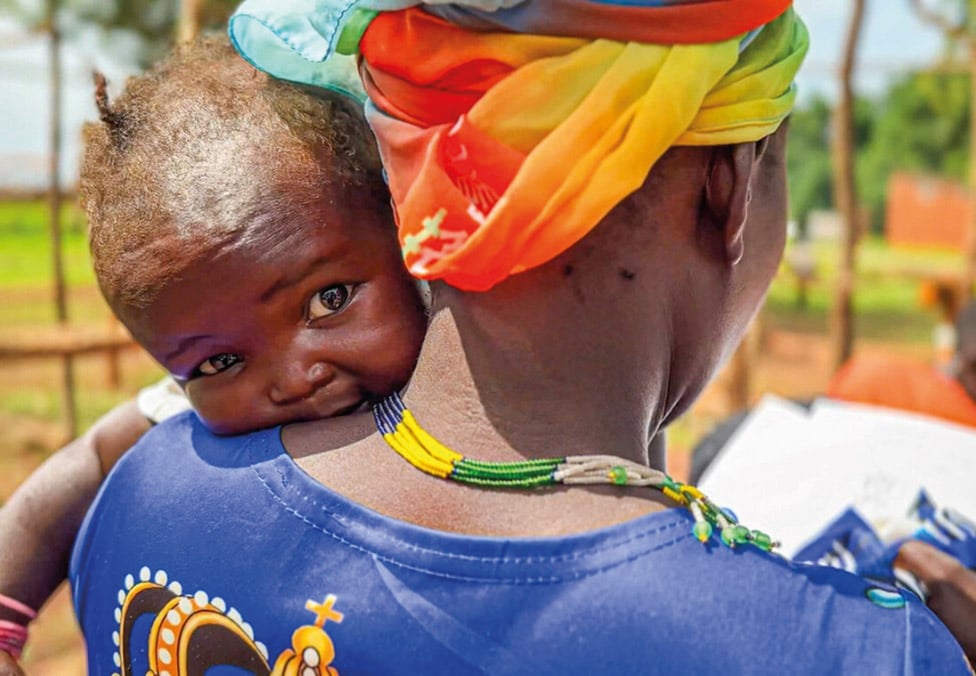 Rachael on joutunut pakenemaan Etelä-Sudanin taisteluja yhdeksän lapsensa kanssa. He asuvat tällä hetkellä epävirallisessa pakolaisleirissä Tamburassa, keppien varaan levitetyn muovipeitteen alla.